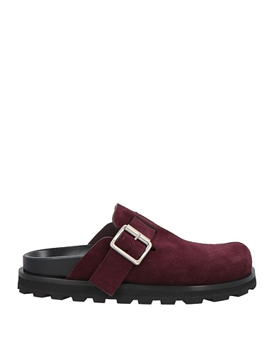 mules, suede, solid color, buckle, leather lining, round toe, flat, lug sole, contains non-textile parts of animal origin