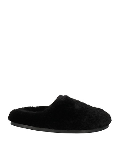 mules, plush fabric, solid color, no appliqués, fully lined, round toe, flat, rubber sole