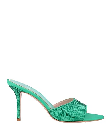 slide sandals, satin, crystals, solid color with appliqués, leather lining, round toe, spike heel, covered heel, leather sole, contains non-textile parts of animal origin