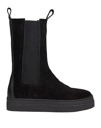 chelsea boots, suede, solid color, no appliqués, leather lining, elasticized inserts, round toe, flat, rubber sole, contains non-textile parts of animal origin