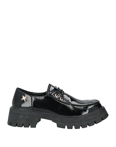chunky lace-ups, coated fabric, patent-effect, solid color, brand logo, leather lining, round toe, square heel, rubber heel, lug sole, contains non-textile parts of animal origin