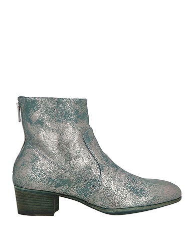 ankle boots, leather, metallic, two-tone, no appliqués, unlined, zipper fastening, round toe, square heel, leather sole, contains non-textile parts of animal origin