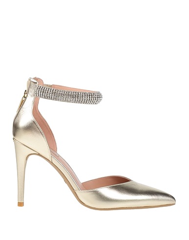 pumps, synthetic material, metallic, solid color with appliqués, crystals, fully lined, pointed toe, stiletto heel, covered heel, rubber sole