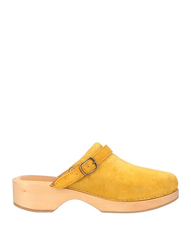 clogs, suede, solid color, no appliqués, round toe, block heel, rubber sole, leather lining, contains non-textile parts of animal origin