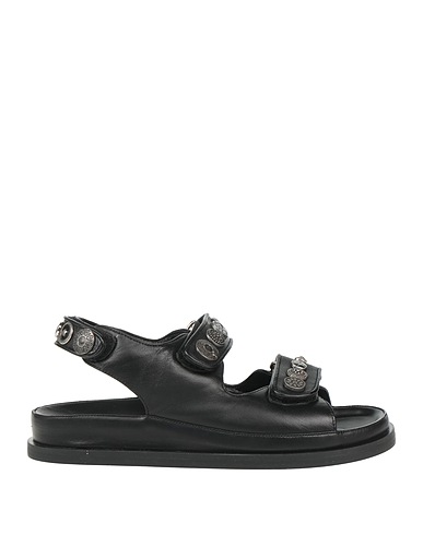technical sandals, leather, solid color with appliqués, studs, leather lining, velcro fastening, round toe, flat, rubber sole, contains non-textile parts of animal origin