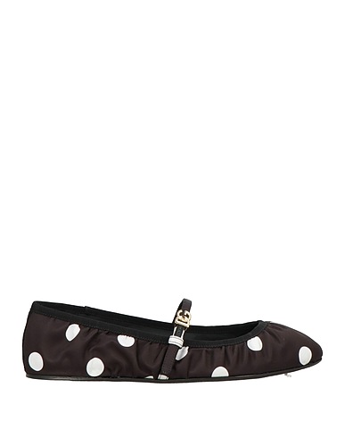 mary jane flats, satin, polka-dot, brand logo, grosgrain trims, leather lining, buckle fastening, round toe, flat, leather/rubber sole, contains non-textile parts of animal origin