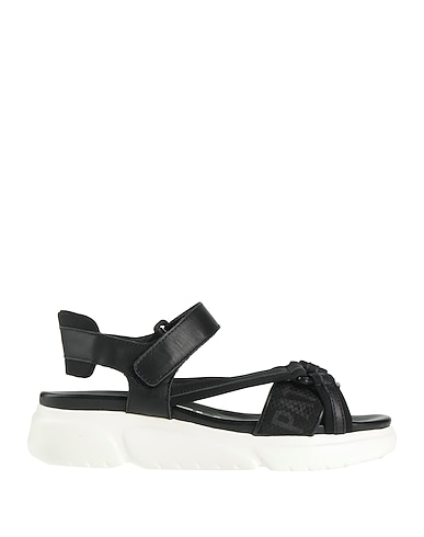 technical sandals, woven, solid color, brand logo, leather lining, velcro fastening, round toe, flat, rubber cleated sole, contains non-textile parts of animal origin
