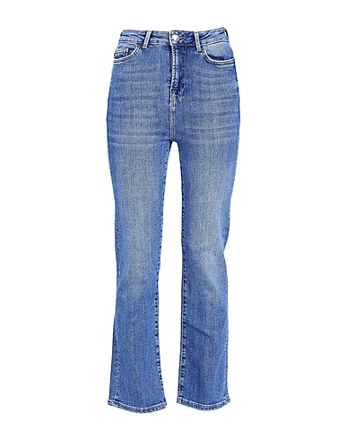 denim, faded, brand logo, solid color, medium wash, high waisted, straight leg, zipper closure, 1 button, five pockets, stretch, straight-leg model