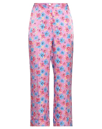 satin, no appliqués, floral design, high waisted, elasticized waist, straight leg, regular fit, zipper closure, button closing, multipockets, pants