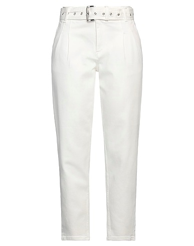 denim, belt, darts, solid color, colored wash, high waisted, belt loops, tapered leg, slim-leg pants, zipper closure, 1 button, multipockets, mom-cut model