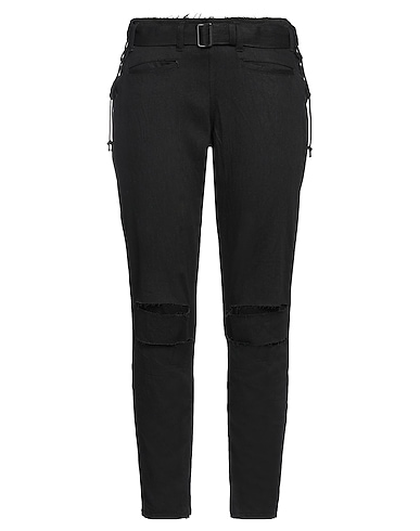 skinny jeans, denim, torn fabric, solid color with appliqués, belt, laces, colored wash, mid rise, belt loops, tapered leg, slim fit, zips at hem, pockets