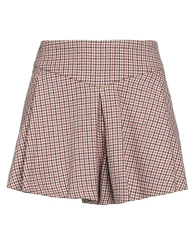tweed, folds, houndstooth, multicolor pattern, mid rise, regular fit, zipper closure, multipockets, divided skirt