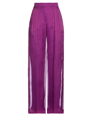 organza, darts, side seam stripes, solid color, high waisted, wide leg, regular fit, zipper closure, hook-and-eye closure, multipockets, tailored
