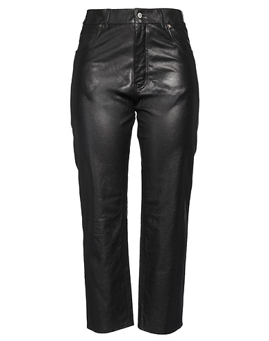 leather, no appliqués, solid color, high waisted, belt loops, straight leg, regular fit, zipper fastening, 1 button, multipockets, do not dry clean, do not tumble dry, do not iron, do not bleach, contains non-textile parts of animal origin, large sized, 5 pocket
