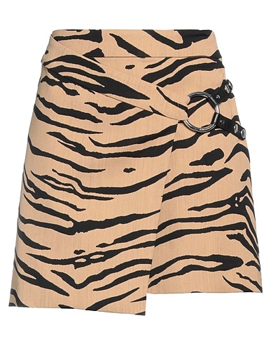 cool wool, coated fabric, brand logo, tiger stripes, snap buttons fastening, 1 button, no pockets, wrap skirt, large sized