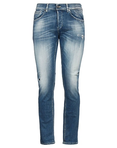 denim, faded, torn fabric, no appliqués, solid color, medium wash, high waisted, tapered leg, regular fit, zipper closure, 1 button, multipockets, stretch, model: george, skinny model