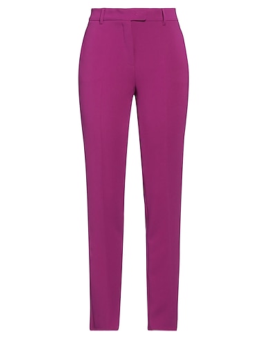 tapered pants, crepe, solid color, no appliqués, high waisted, belt loops, slim fit, zipper fastening, hook fastenings, raw-cut hem, slit pockets, machine wash or dry clean, do not bleach, do not tumble dry