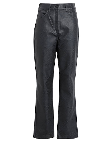coated fabric, brand logo, solid color, high waisted, straight leg, regular fit, 1 button, zipper closure, multipockets, pants