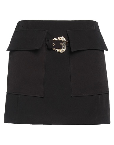 woven, brand logo, buckle, solid color, unlined, zipper fastening, hook fastenings, multipockets, stretch, small sized, pencil skirt