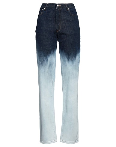 denim, faded, no appliqués, two-tone, medium wash, mid rise, button fastenings, zipper fastening, multipockets, straight-leg model