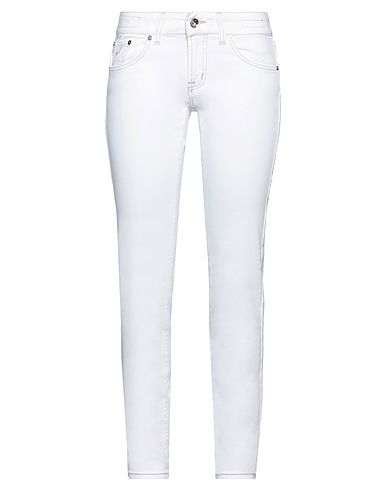 skinny jeans, denim, solid color, brand logo, leather trims, colored wash, low waisted, belt loops, tapered leg, regular fit, zipper fastening, 1 button, pockets, contains non-textile parts of animal origin