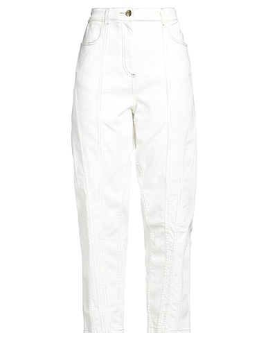 tapered jeans, denim, solid color, no appliqués, colored wash, high waisted, belt loops, regular fit, 1 button, zipper fastening, multipockets, stretch, machine wash or dry clean, do not bleach, tumble dry