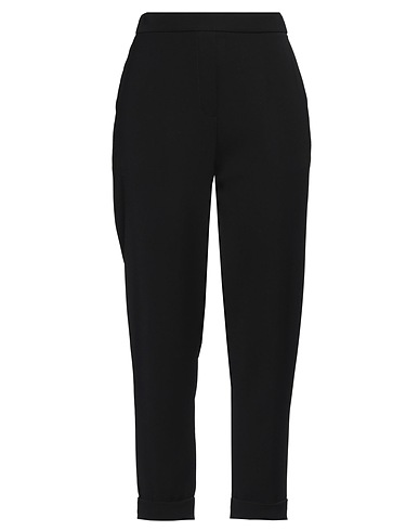 crepe, no appliqués, solid color, high waisted, elasticized waist, regular fit, folded hem, multipockets, machine wash or dry clean, do not bleach, do not tumble dry, tapered pants
