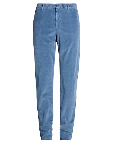 casual pants, corduroy, stretchy fabric, solid color, embroidered logo, high waisted, tapered leg, regular fit, zipper fastening, button fastenings, slit pockets, welt pockets, machine wash or dry clean, do not bleach, do not tumble dry, contains non-textile parts of animal origin