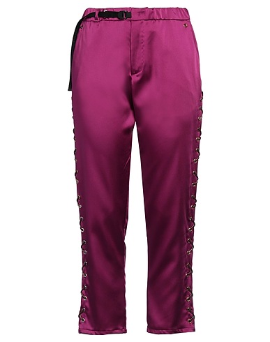 satin, embellished, solid color with appliqués, mid rise, regular fit, zipper fastening, hook fastenings, multipockets, stretch, machine wash or dry clean, do not bleach, do not tumble dry, straight-leg pants