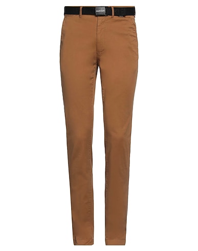 casual pants, gabardine, solid color, belt, brand logo, mid rise, tapered leg, regular fit, 1 button, zipper fastening, multipockets, stretch, machine wash, tumble dry