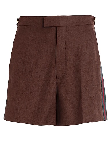 shorts, woven, grosgrain, solid color with appliqués, side seam stripes, regular fit, zipper fastening, hook fastenings, pockets, dry clean, do not bleach, do not tumble dry, this brand runs large