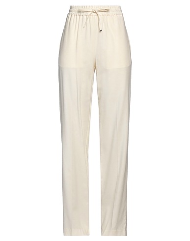 straight-leg pants, flannel, solid color, brand logo, high waisted, elasticized waist, regular fit, drawstring fastening, welt pockets, dry clean, do not bleach, do not tumble dry