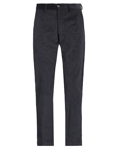 casual pants, corduroy, stretchy fabric, solid color, brand logo, mid rise, tapered leg, regular fit, zipper fastening, slit pockets, welt pockets, machine wash or dry clean, do not bleach, do not tumble dry