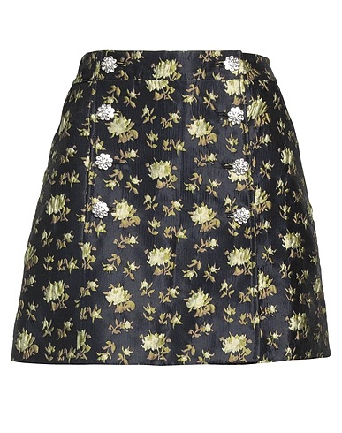 wrap skirt, crepe, jacquard, crystals, floral-print, unlined, multipockets, machine wash, do not bleach, do not tumble dry