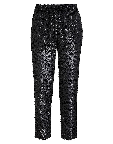 tapered pants, voile, embellished, solid color, high waisted, elasticized waist, regular fit, multipockets, dry clean, do not bleach, do not tumble dry