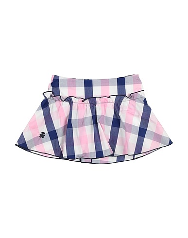 woven, embroidered logo, ruffles, checked, elasticized waist, unlined, without pockets, hand wash or dry clean, do not bleach, do not tumble dry