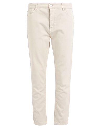 tapered jeans, denim, solid color, brand logo, colored wash, high waisted, belt loops, slim fit, concealed button fastenings, five pockets, machine wash or dry clean, do not bleach, do not tumble dry
