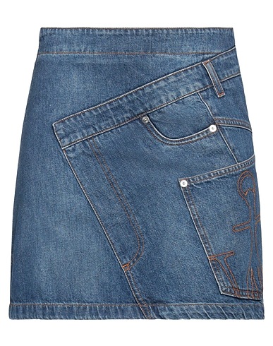 flared skirt, denim, solid color, leather trims, medium wash, unlined, zipper fastening, multipockets, machine wash, do not bleach, do not tumble dry, contains non-textile parts of animal origin, this brand runs large