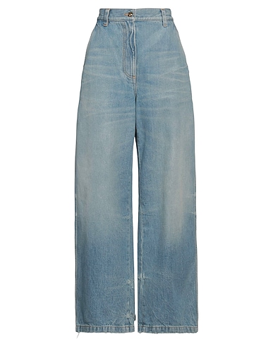 wide-leg jeans, denim, faded, distressed, solid color, brand logo, medium wash, high waisted, regular fit, zipper fastening, 1 button, multipockets, machine wash or dry clean, do not bleach, tumble dry