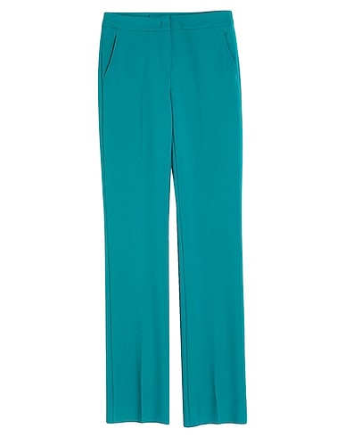 straight-leg pants, crepe, solid color, no appliqués, mid rise, regular fit, hook fastenings, zipper fastening, multipockets, stretch, hand wash or dry clean, do not bleach, do not tumble dry