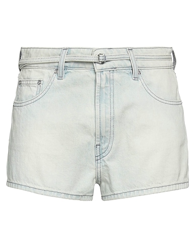 hot pants, denim, faded, solid color, belt, leather trims, brand logo, light wash, high waisted, regular fit, 1 button, zipper fastening, five pockets, machine wash, do not bleach, tumble dry, contains non-textile parts of animal origin