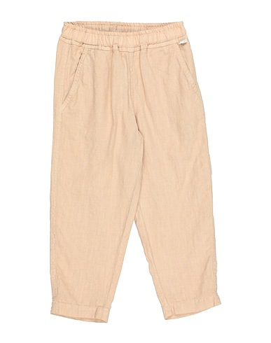 linen, solid color, brand logo, elasticized waist, tapered leg, regular fit, slit pockets, machine wash or dry clean, do not bleach, do not tumble dry