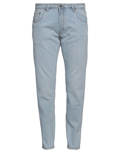 tapered jeans, denim, solid color, brand logo, leather trims, light wash, mid rise, slim fit, button fastenings, five pockets, machine wash or dry clean, do not bleach, do not tumble dry, contains non-textile parts of animal origin