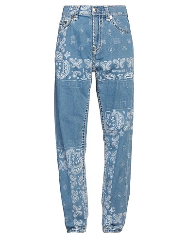 baggy jeans, denim, paisley-print, brand logo, medium wash, low-crotch, relaxed fit, zipper fastening, 1 button, five pockets, machine wash, do not bleach, tumble dry