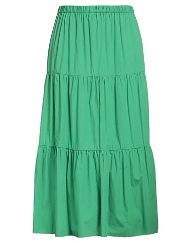 flared skirt, poplin, solid color, brand logo, tiered, elasticized waist, unlined, machine wash or dry clean, do not bleach, do not tumble dry
