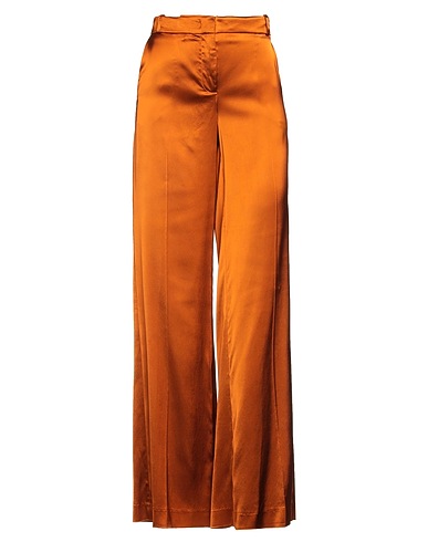 wide-leg pants, satin, solid color, no appliqués, mid rise, belt loops, regular fit, zipper fastening, hook fastenings, multipockets, stretch, dry clean, do not bleach, do not tumble dry, this brand runs small