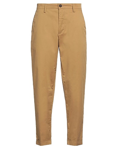 chino pants, woven, solid color, brand logo, mid rise, tapered leg, regular fit, 1 button, zipper fastening, folded hem, multipockets, stretch, machine wash, do not bleach, do not tumble dry, cropped