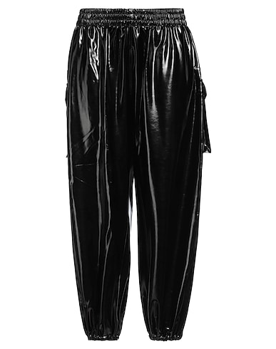 cargo pants, coated fabric, solid color, no appliqués, high waisted, elasticized waist, regular fit, multipockets, machine wash, do not bleach, do not tumble dry, do not iron