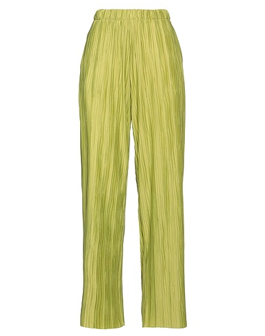 wide-leg pants, satin, solid color, pleated, elasticized waist, relaxed fit, multipockets, machine wash or dry clean, do not bleach, do not tumble dry