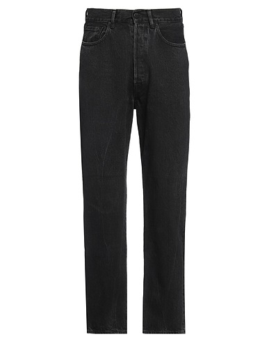 straight-leg jeans, denim, solid color, brand logo, leather trims, colored wash, high waisted, regular fit, button fastenings, five pockets, machine wash, do not tumble dry, contains non-textile parts of animal origin, this brand runs large